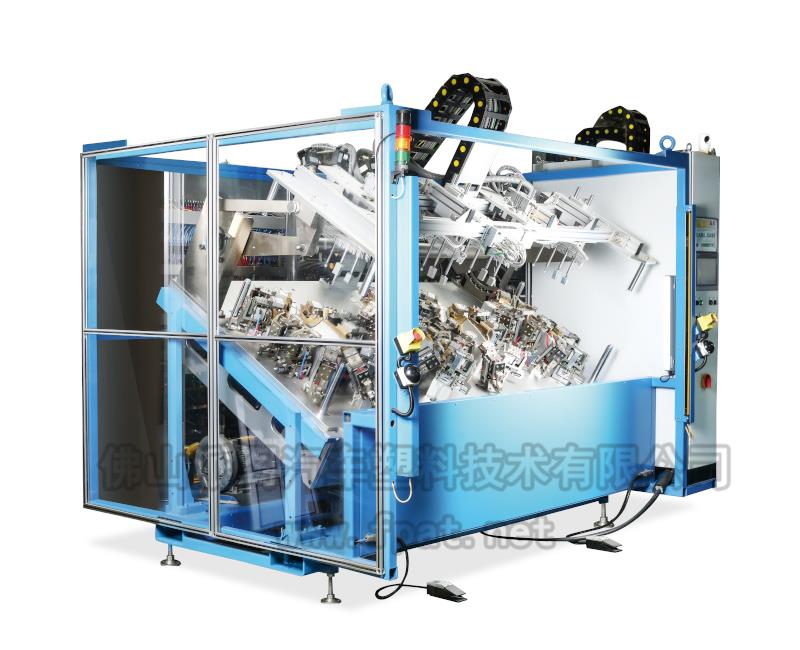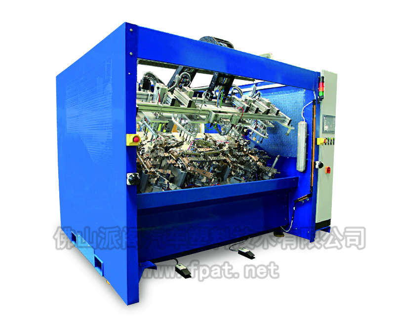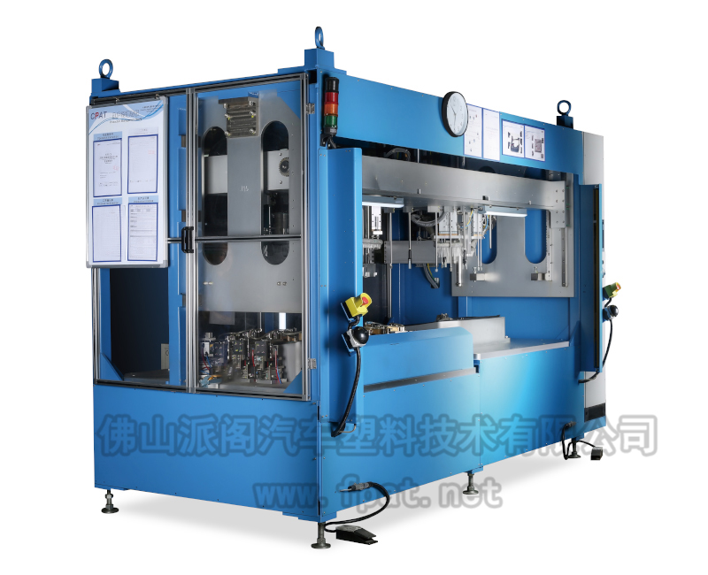 該類設(shè)備用于真空復(fù)合或壓力復(fù)合(粘接)后的零件,并將骨架四周的表皮翻邊包覆過來,多用于汽車內(nèi)飾件,如門扶手、上框架、儀表板飾條等。