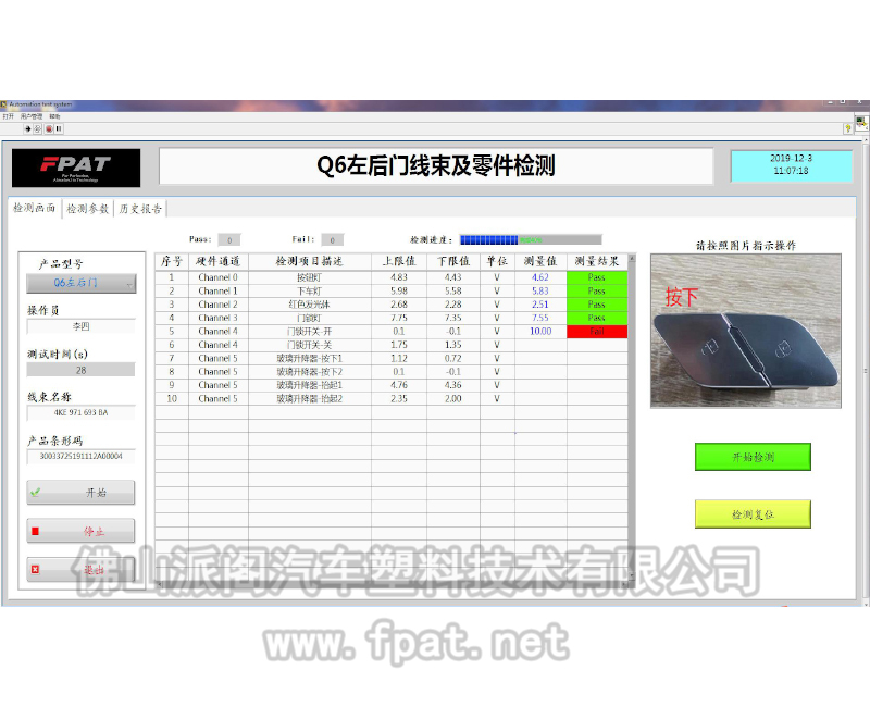 電檢和視覺檢測設備用于檢測汽車門板總成或儀表板總成線束及零件是否完好,主要功能如下: